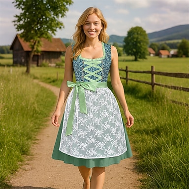 Oktoberfest Robe Femme de ménage Bavarois Prairies Femmes Carnaval Soirée Fête de la Bière Tissu de style traditionnel Robe Tablier Sans chemisier