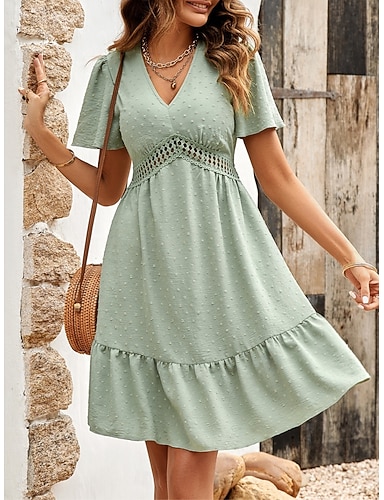 Femmes Robe Longueur Genou Robe de Plage Robe en Dentelle Robe Décontractée Élégant Mode Moderne Extérieur Plage Vacances Coupe régulière Uni Manche Courte Col en V Bordeaux Vert Claire Abricot Ét