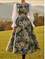 Femmes Robe maxi Robe Décontractée Robe Fleurie Élégant ancien Mode Extérieur Vacances Sortir Coupe régulière Fleuri manche longue Col en V Vert Été Printemps Automne