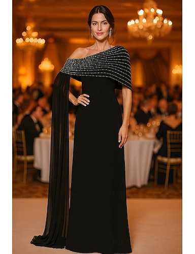 Fourreau Colonne Longueur au sol Robe de Soirée Élégant ancien Scintillant Sans manches Épaules Dénudées Mariage Formel Crêpe Extensible avec Strass Broderie