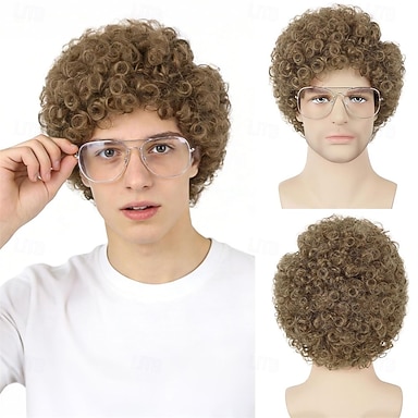 Perruque afro courte et bouclée marron rétro pour homme, aspect naturel et duveteux, idéale au quotidien ou pour une soirée (perruques uniquement).