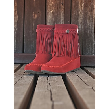 Bottes mocassins à franges bohèmes pour femmes, chaussures plates en daim souple avec détails rétro pour tenues décontractées et vêtements de tous les jours