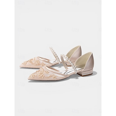 Chaussures plates de mariage élégantes pour femme, ornées de perles ivoire, parfaites pour un mariage à la plage.