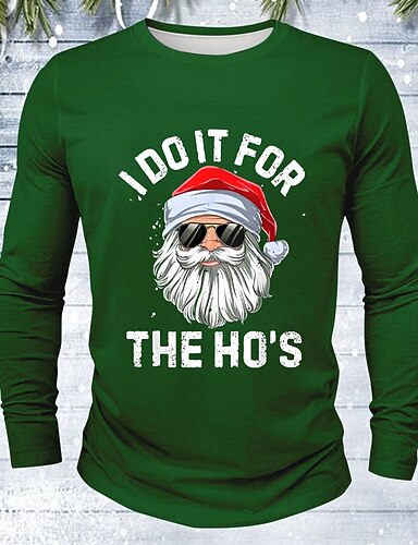 Noël Homme Père Noël Drôle T-shirt manche longue T-shirt Impression 3D Col ras du cou Chemise Mode Basique 3D Rue Occasionnel Quotidien Bleu Rouge Vert Été Printemps Vêtement Tenue S M L XL XXL XXXL