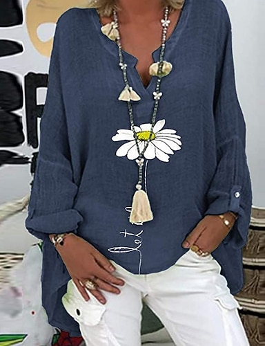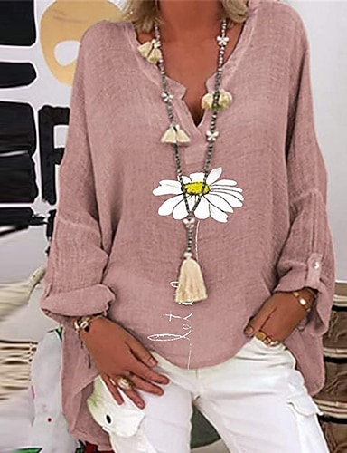 Femmes Chemises en coton et lin Faux coton lin Imprimé Fleuri Basique Occasionnel manche longue Col de chemise Hauts Réguliers Quotidien Blanche Rose Claire bleu marine Violet Été Automne