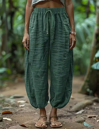 Femmes Pantalons Pantalon d'été Pantalons Amples Vacances Mode Décontracté Quotidien Longueur complète Taille Moyenne Couleur Unie Uni Cordon de serrage Avec Poches in in france they say Pontalon