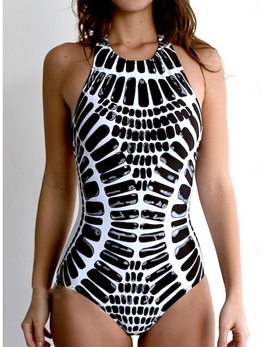 Femmes Maillots de Bain Une Pièce Monokini Maillot de bain Contrôle du ventre Taille haute Mince Dos nu Vacances Tenues de plage Graphique Géométrique Col rond Sans manches Maillots de bain