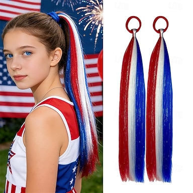 Extensions de cheveux tressées synthétiques à paillettes rouges, blanches et bleues pour filles et femmes, style fantaisie, idéales pour les fêtes et festivals. Longueur : 50 cm (20 pouces).