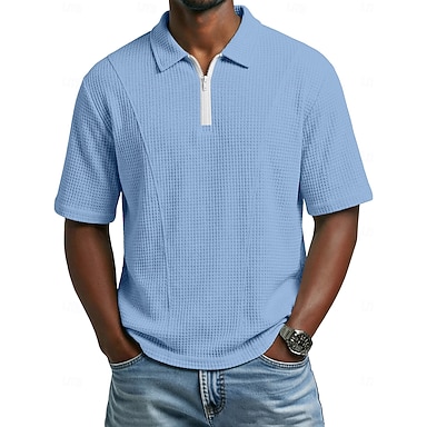 Homme Chemises Polo Gaufre Polo à fermeture éclair Occasionnel Fête Revers Zip quart Manche Courte Mode Basique Uni Quart de zip Été Printemps Coupe régulière Noir Blanche bleu marine Violet Vert Kaki