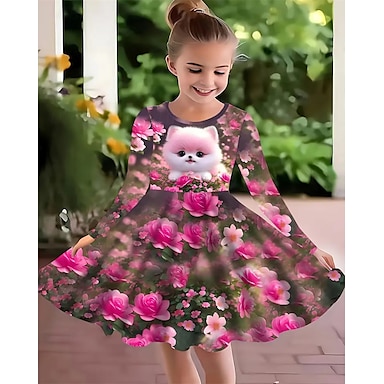 FILLE 3D Graphic Robe manche longue 3D effet Printemps Automne Vacances du quotidien Le style mignon Décontractées Doux Enfants 3-10 ans Robe Évasée Robe Trapèze Au dessus du genou Standard