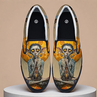Chaussures à enfiler imprimées d'un visage d'alien créatif pour hommes de Mardi Gras - Design artistique et coloré pour le carnaval et les festivals tendance