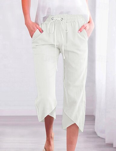 Femmes Pantalon capri Faux coton lin Slacks Shorts d'été Streetwear Occasionnel Longueur mollet Naturel Uni Avec Poches Conception à cordon élastique Respirabilité Doux Micro-Élastique Occasionnel