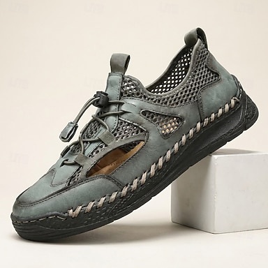 Baskets grises décontractées pour homme, respirantes, ajourées, à lacets, légères et confortables, idéales pour l'été, les voyages, les loisirs en plein air, le quotidien et les activités du week-end.