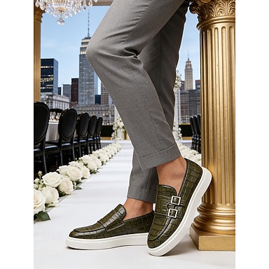 Mocassins à enfiler en cuir imprimé serpent vert pour hommes avec boucle en métal et embout décoratif - chaussures habillées de style exotique en cuir de vachette de qualité supérieure pour les fêtes et les événements formels