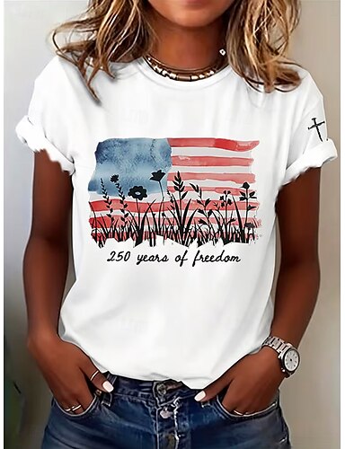 Jour de l'Indépendance Américaine Femmes T-shirt Imprimé Graphique Lettre ancien Élégant Classique Manche Courte Col rond Hauts Réguliers Quotidien Bleu Noir Blanche Rouge Été Printemps