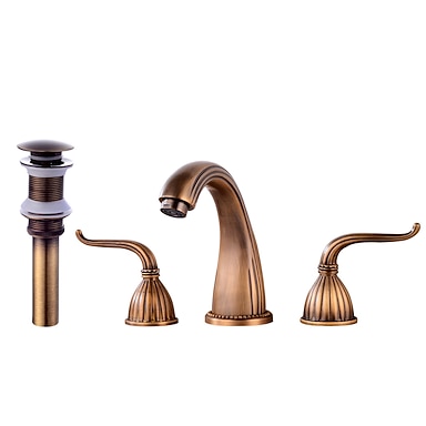 Robinet de lavabo - Classique Laiton antique / Électroplaqué Ensemble central Deux poignées un trouBath Taps