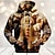 sweat à capuche 3D bonhomme en pain d'épice de Noël pour hommes, mignon, imprimé 3D, sport, plein air, vacances, streetwear, marron, capuche, poche avant, printemps&chemise de créateur d'automne