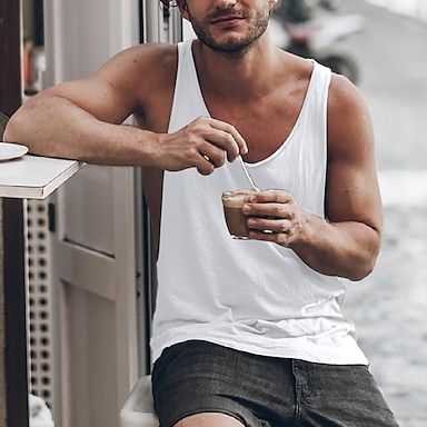 Débardeur en mélange de coton pour homme, col en U profond, débardeur sans manches, chemise décontractée, col ras du cou, mode classique, confortable, blanc