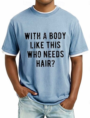 Avec un corps pareil, qui a besoin de cheveux ? T-shirt graphique homme délavé en coton, style vintage rétro, effet usé, inscription humoristique, tailles S, M, L, XL, XXL, XXXL