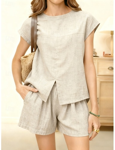 Femmes Ensembles deux pièces Ensembles de Shorts Manche Courte Col en V Uni Mode Streetwear Occasionnel Quotidien Extérieur Noir Rose Claire Vert Véronèse Été Coupe régulière