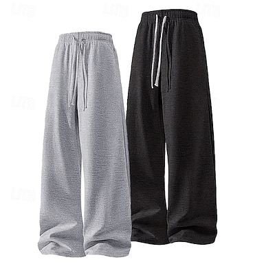 Paquets multiples 2 pièces Homme noir + gris foncé Joggings Pantalons Cordon de serrage Taille Élastique Uni Vacances Tenue quotidienne Polyester Printemps