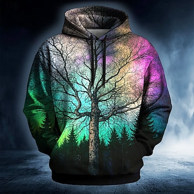 Homme Arbre Illusion d'optique Sweatshirt Ethnique Cowboy manche longue Col ras du cou Vêtements de rue Noir Cordon de serrage Automne Hiver Designer S M L XL XXL XXXL
