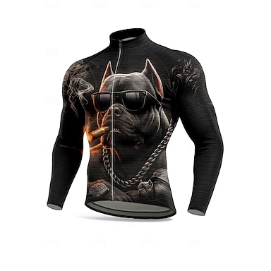 Homme Hauts Maillot de cyclisme Graphique Animal Chien manche longue Cyclisme Maillot Top avec 3 poches arrière VTT Vélo tout terrain Cyclisme sur route Soleil Protection solaire Écran solaire