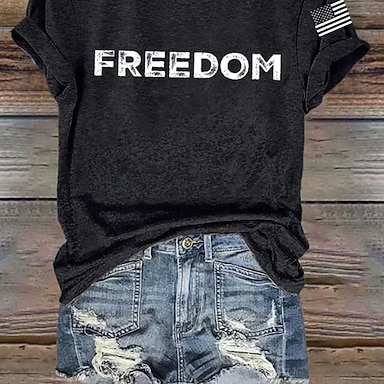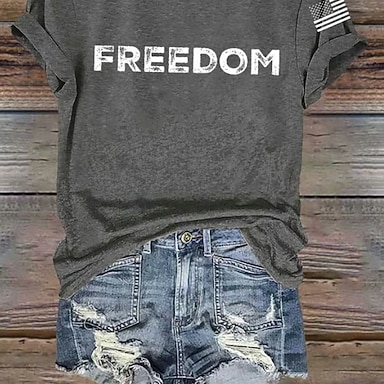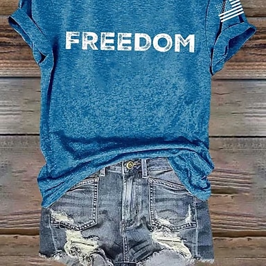 Jour de l'Indépendance Américaine Femmes T-shirt Imprimé Graphique Lettre Drapeau Américain ancien Élégant Classique Manche Courte Col ras du cou Hauts Réguliers Quotidien bleu marine Rouge / Bleu