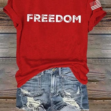 T-shirt pour femme patriote pour le jour de l'indépendance - graphique - drapeau - élégant - décontracté - rouge blanc et bleu - à manches courtes - col rond - hauts réguliers - impression