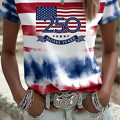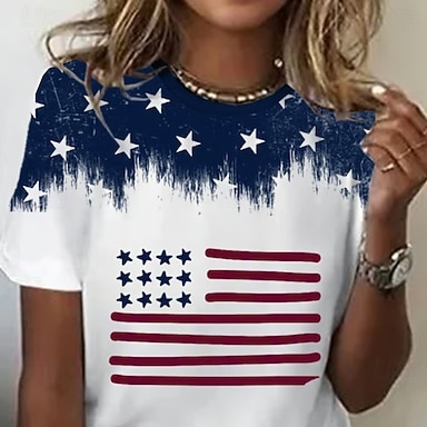 Jour de l'Indépendance Américaine Femmes T-shirt Imprimé Graphique Drapeau Élégant Classique Occasionnel Manche Courte Col ras du cou Hauts Réguliers Quotidien Bleu Noir Blanche Rouge Été Printemps