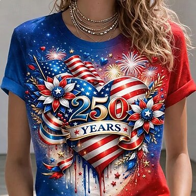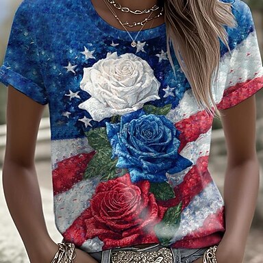 Jour de l'Indépendance Américaine Femmes T-shirt Imprimé Graphique Drapeau Élégant Classique Occasionnel Manche Courte Col ras du cou Col rond Hauts Réguliers Quotidien Bleu Rouge Rouge / Bleu Ét
