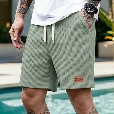 Homme impression de lettre FREEDOM Blocage de couleurs Short gaufré Short décontracté Short texturé Taille Moyenne Mode Décontractée Quotidien Vacances Taille élastique avec cordon de serrage Short