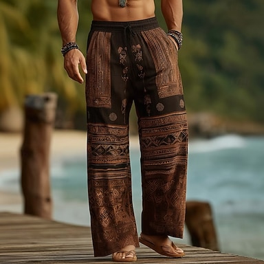 Homme Formes Géométriques Ethnique Pantalons Pantalons Amples Pantalon décontracté Taille Moyenne Boho Vintage Rétro Maison Extérieur Vacances Taille élastique avec cordon de serrage Pantalon en lin