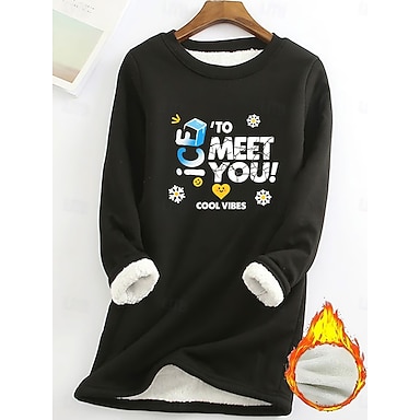 Femmes Pyjama sweat-shirt doublé polaire Sweatshirt Pull Pull Sweat-shirts Lettre Chaud Streetwear Occasionnel manche longue Col ras du cou Hauts Longs Maison Tenue Quotidienne Occasionnel Imprimé