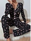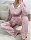 Femmes Ensemble Pyjama Occasionnel Confort Fleuri Taille Élastique Pantalon Maison Quotidien manche longue Col de chemise Noir Marron Gris Printemps Automne Hiver Coupe régulière