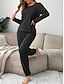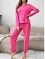 Femmes Ensemble Pyjama Occasionnel Confort Couleur Unie Taille Élastique T-shirt Pantalon Maison Quotidien manche longue Col ras du cou Noir bleu marine Fuchsia Vert Printemps Automne Hiver Coupe