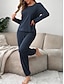 Femmes Pyjamas Loungewear Mode Occasionnel Couleur Unie Vacances Maison Sans manches Bleu de minuit Automne Hiver Coupe Ample