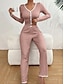 Femmes Ensemble Pyjama Occasionnel Confort Couleur Unie Taille Élastique Pantalon Maison Quotidien manche longue Col en V Bleu Noir Vin Rouge Kaki Printemps Automne Coupe Slim