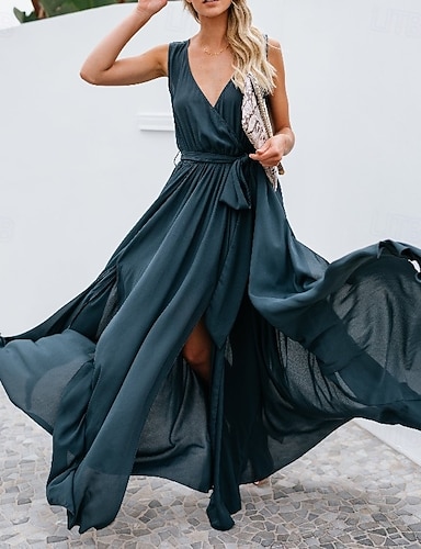 Ligne A Longueur cheville Robe de Soirée Robe de Cocktail Robe d'invité de mariage Robe de Mère de Mariée Manche 3/4 Col en V Élégant Luxueux Éclat & Brillance Cocktail Fête de mariage Semi-Formel