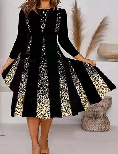 Robe Midi Femme Robe Décontractée Robe d'hiver Robe Évasée Mode Modeste Formelle Plein Air Fête Coupe Régulière Fleurs Manches Longues Col Ronde Or Printemps Automne Hiver Automne
