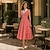 Robe de fête A-Line longueur thé Robe cocktail Robe invitée de mariage Robe Mère de la mariée Robe à manches longues Décolleté en V Élégante Vintage Fête Formelle en laine avec un bloc de couleurs.