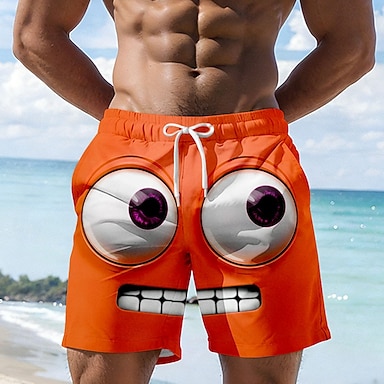 Homme Illusion d'optique Dessin Animé 3D Visage Souriant Maillots de bain Shorts de bain Shorts de Surf Taille Moyenne Hawaïen Drôle Vacances à la Plage Poches Latérales doublure en maille Taille
