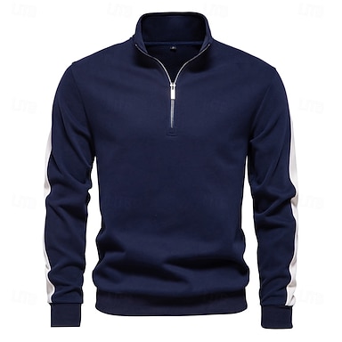 Homme Sweat-shirt Sweat-shirt quart de fermeture éclair Abricot Noir Blanche Vert Véronèse bleu marine Demi-zip Bloc de Couleur Patchwork Sport & Loisir Quotidien Fête Polyester Velours côtelé