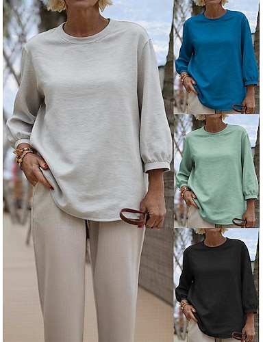 Femmes Chemisier Faux coton lin Couleur Unie Quotidien Élégant Basique manche longue Col ras du cou Hauts Réguliers Quotidien Bleu Noir Vert Gris Printemps Automne