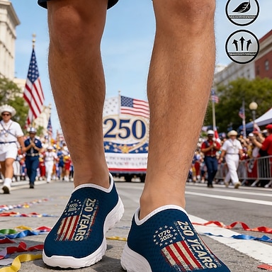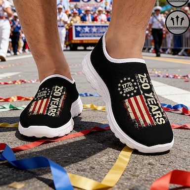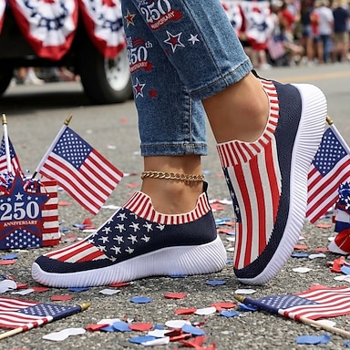 Sandales noires et rouges pour femmes, commémorant le 250e anniversaire des États-Unis : sandales confortables à brides, ornées d’étoiles et de rayures, idéales pour la plage, les défilés et les