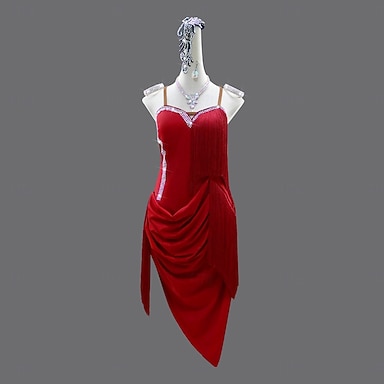 Danse Latine Robe Strass Gland Épissage Femmes Performance Entraînement Sans manches Spandex