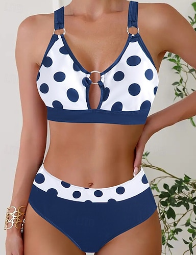 Femmes Maillots de Bain 2 pièces Coquin Maillot de bain Dos nu Vacances Tenues de plage À pois Col en V Sans manches Maillots de bain