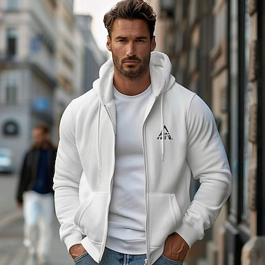 Homme Sweats à capuche zippés Noir Blanche À capuche Graphique Géométrique Vêtements de sport Art graphique Occasionnel Vêtement Tenue Pulls Capuche Pulls molletonnés manche longue