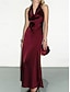 Femmes Robe maxi Robe en Satin Moulant Élégant Mode Moderne Extérieur Vacances Sortir Coupe régulière Uni Sans manches Col Bénitier Rouge Été Printemps