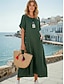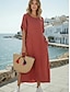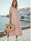 Femmes Robe maxi Robe en coton et lin Mode Moderne Quotidien Extérieur Vacances Coupe Ample Uni Manche Courte Col ras du cou Bleu Rose Claire Rouge Vert foncé Été Printemps